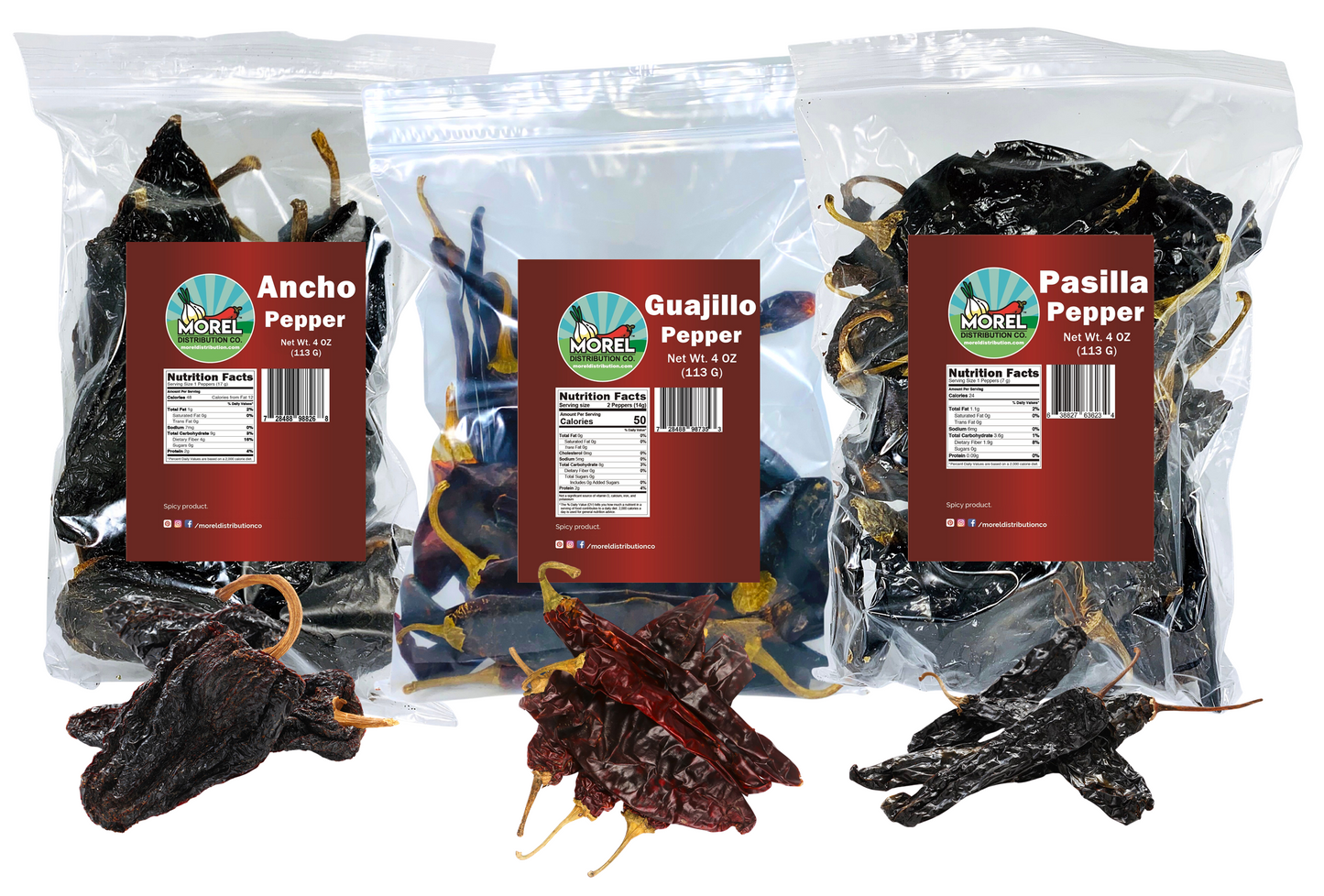 Dried Chile Peppers Variety Pack (12 oz Total) Ancho Chiles, Guajillo Chiles and Pasilla Chiles - The Holy Trinity of Chiles.
